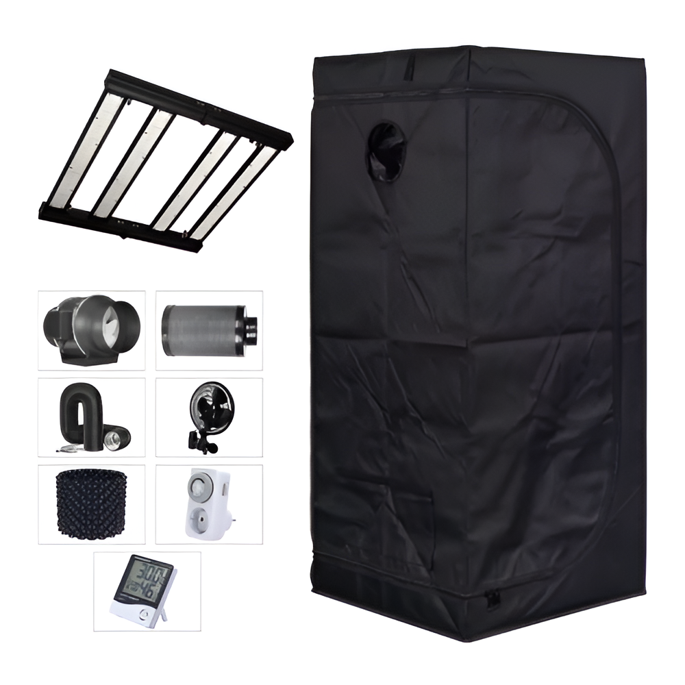 Features: Full-spectrum LED panel, inline fan, carbon filter, ducting, climate monitor